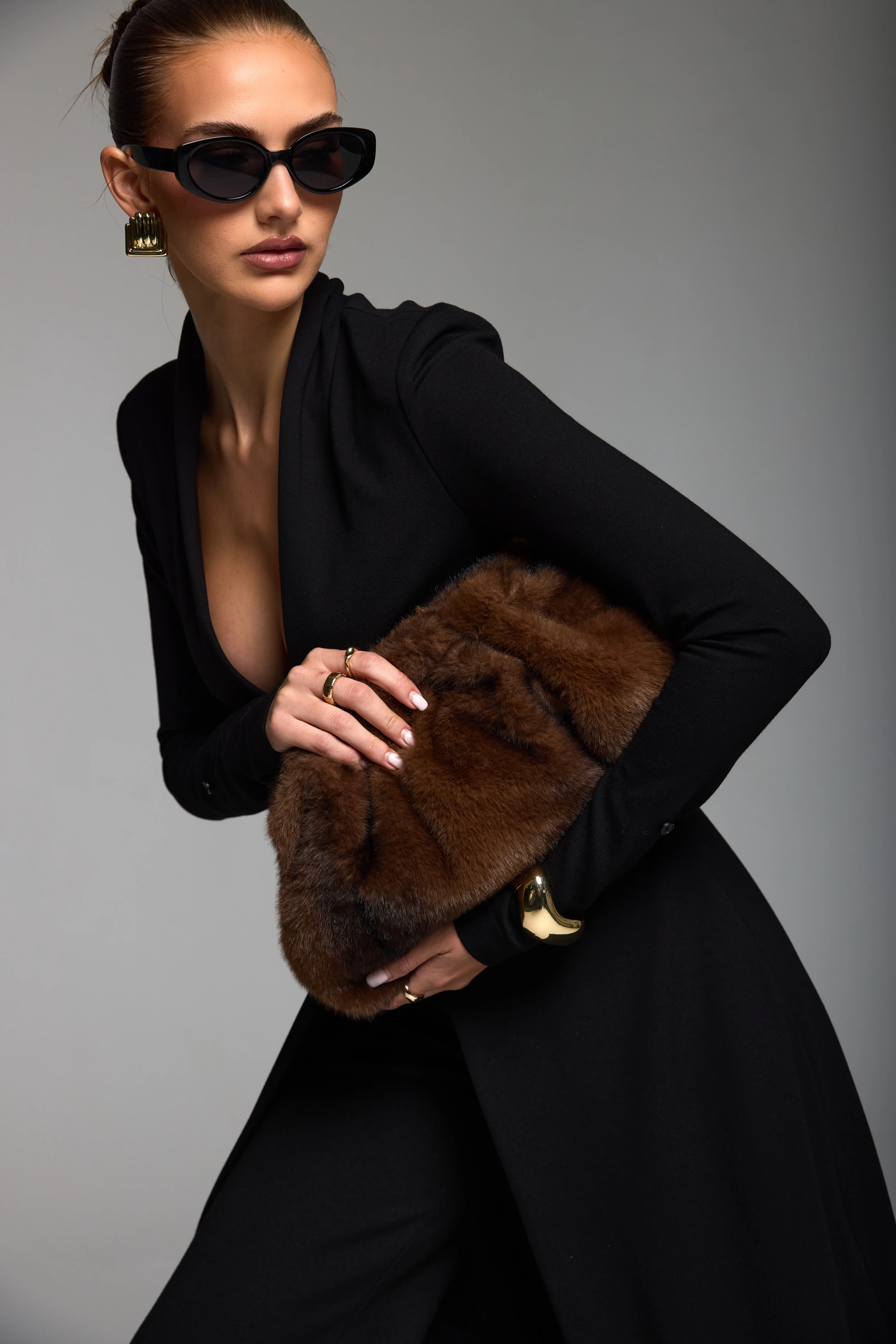 Plush, sculptural, and unapologetically luxurious - The Sabine bag is the statement winter accessory you didn’t know you needed. Crafted from rich chocolate-toned faux fur, its voluminous silhouette and supple texture create a bold contrast against tailored winter wear.